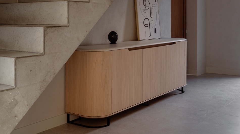 De June collectie van Robu combineert eikenhout met een frisse, moderne uitstraling. De zachte rondingen zorgen voor een rustige en verfijnde look, terwijl het natuurlijke eikenhout elke ruimte vult met warmte en karakter. Beschikbaar in verschillende maten en afwerkingen.