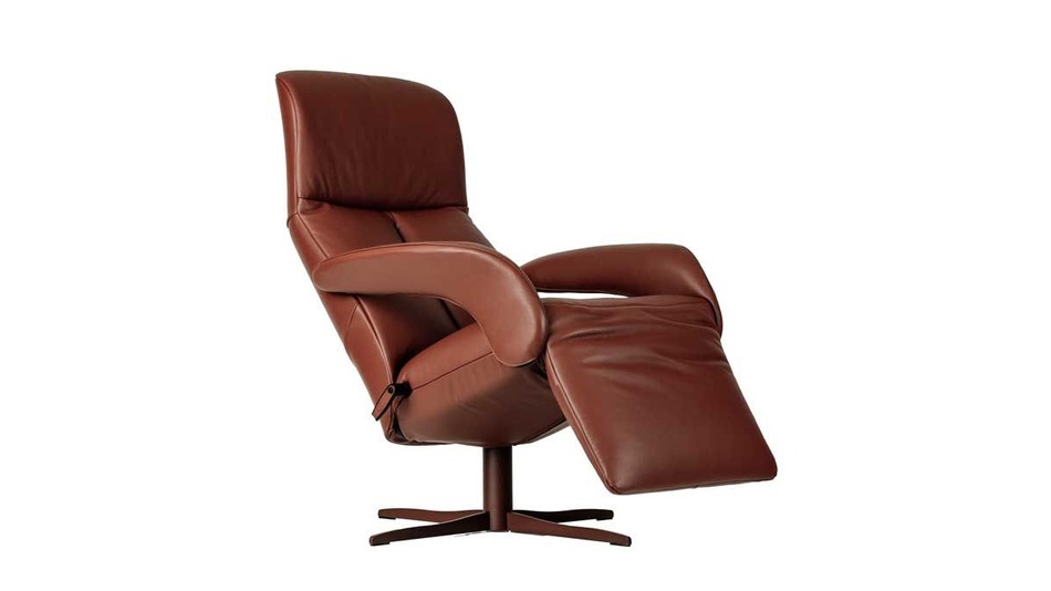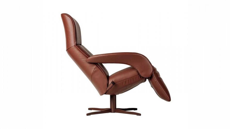 Uitvoering: Mono move medi. Leder celia burgundy. Voet 4-ster golvend epoxy mat oxide. Afmeting: 76x80/154x113cm. Zh 45cm.